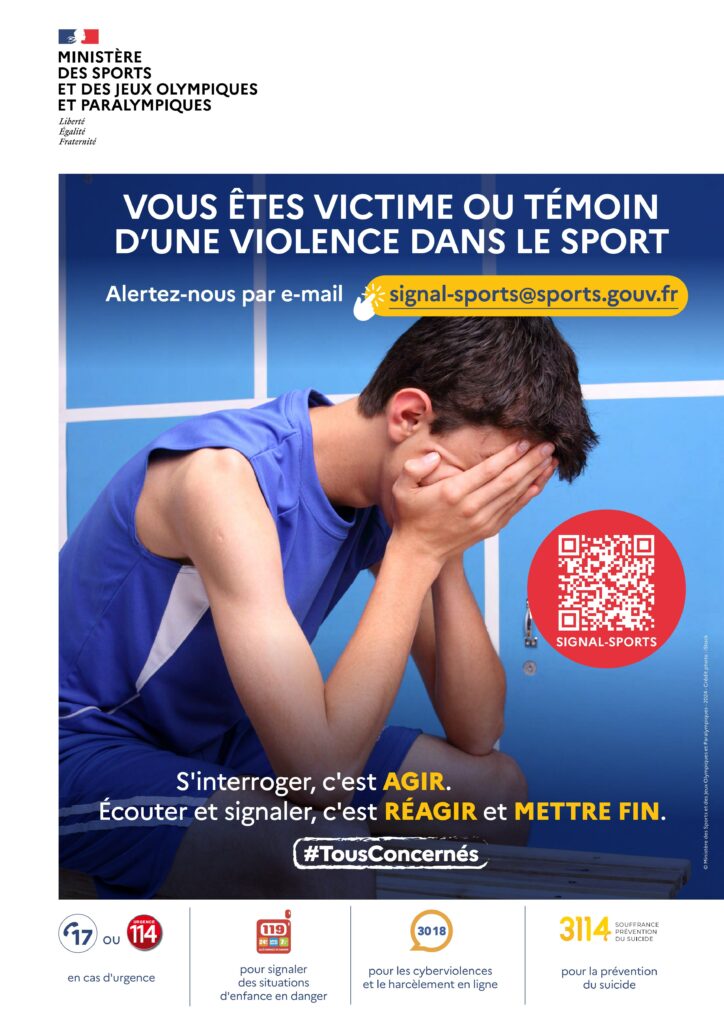 Affichage obligatoire de l’affiche A3 « 𝗦𝗶𝗴𝗻𝗮𝗹–𝗦𝗽𝗼𝗿𝘁𝘀 » fournie par le Ministère des Sports
